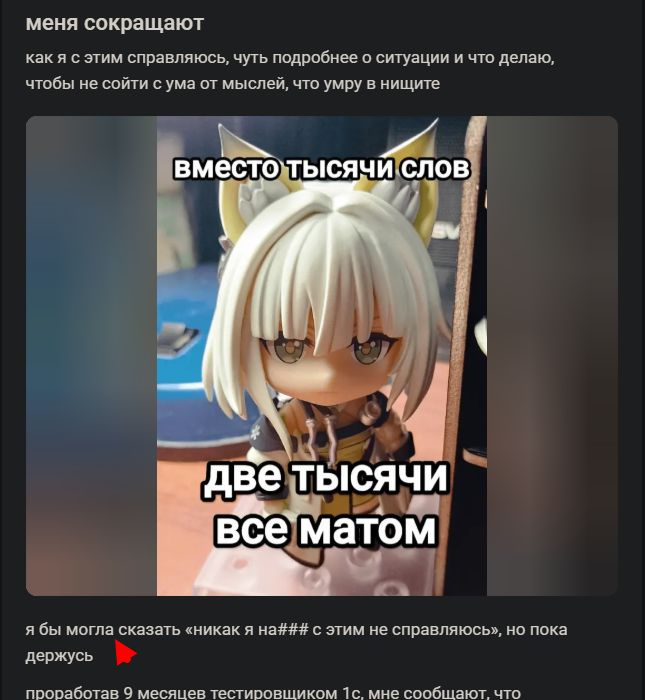 >>3573724 По тестовым заданиям хрюши и вправду ахуели. Я тоже видел такое. Опыт нужен до года, год или стажерская позиция. Задания на часов 10-15 дают, зп копеечную предлагают, не знаю кто такое делает. Иногда задание это в УТ написать обработку, максимально похожую на рабочую задачу, за бесплатно. Самое тупорылое, что было: опыт от года, задание: написать на пайтоне обученную нейронку для распознавания аудио сообщений, на пайтоне так же поднять сервак с этой нейронкой . На стороне 1с множество каких то обработчиков написать, асинхронные вызовы, рег задание которое будет отправлять запрос на этот сервак раз в 30 секунд, отправлять аудио, получать статус распознавания, и итоговый результат должен записываться куда то. ВНИМАНИЕ: Заработная плата была то ли 60, то ли 70 тысяч на позицию. Я по приколу сделал за 10 минут через гпт, позвали на собес. Спросил на собесе про зарплату сразу, сказали, что да действительно 60 или 70 тысяч. А дальше какой то молодой хрюша стал спрашивать по коду. Я сказал что разумеется через нейронку прогнал и сам ничего не делал. Спросил много ли людей делают такое тестовое за перспективу копеечной зп,, он сказал, что да