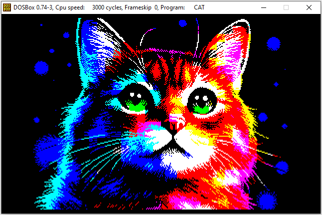 Под ДОС надо будет экран переключить в нужный видеорежим. Это ещё одно направление пердолинга. Знаю про VGA режим 640x480, 256 цветов, палитровый цвет. Так просто больше режимов я не знаю. А картинка наверняка True Color, 24 битный цвет. Придётся мудохаться, как-то переводить её в 256 цветов. Вообще, вроде бы как-то можно задействовать видеорежимы с большим разрешением и глубиной цвета. Наверное, работая напрямую с видеокартой. Они, говорят, часто поддерживают стандарты VESA. Гугли в этом направлении. Получается, это ещё одна область пердолинга.
