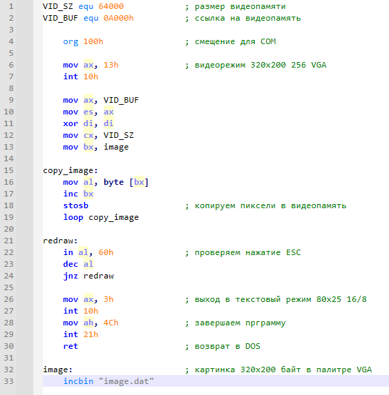 В принципе всё, картинка загружена. Проблема в том, что наверное под ДОС надо её отобразить. На самом деле, вся задача отображения картинки сводится к задаче отображения произвольных пикселей.