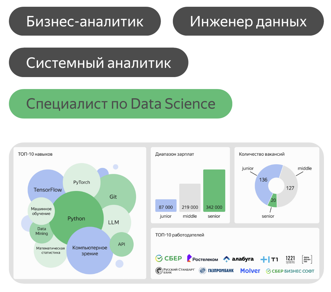 Продублирую вопрос в вашем итт треде Работаю системным аналитиком enterprise софта в бигтехе, 350к на руки. Занимаюсь этим больше 10 лет и что-то подвыгорел от однообразия. Да и денег тоже хочется больше, но выше меня только архитекторы, а там уже хуёвый баланс между попиздеть и поковыряться в коде (не люблю много пиздеть). Так вот, начал присматривать профессию для переката. Чистый кодинг имхо скучновато, да и нейросети наступают на пятки. Пошарился по яндекс практикуму в части data science. Показалось, что мало пиздежа у data engineer и computer vision. Но какие-то зарплаты синек рисуют грустные - те же 350к. Или вон - синька CV для военки от 250к. Охуеть вообще - сборщики дронов без образования и то получают немногим меньше. Неужто люди, обучающие нейронки водить машины или собирать урожай без участия человека, получают край 350к? И каков вообще % таких задач на рынке? Или все пилят рекомендательные системы и исследования, какой цвет кнопки поможет впарить лоху больше товаров? Такое не хотет.