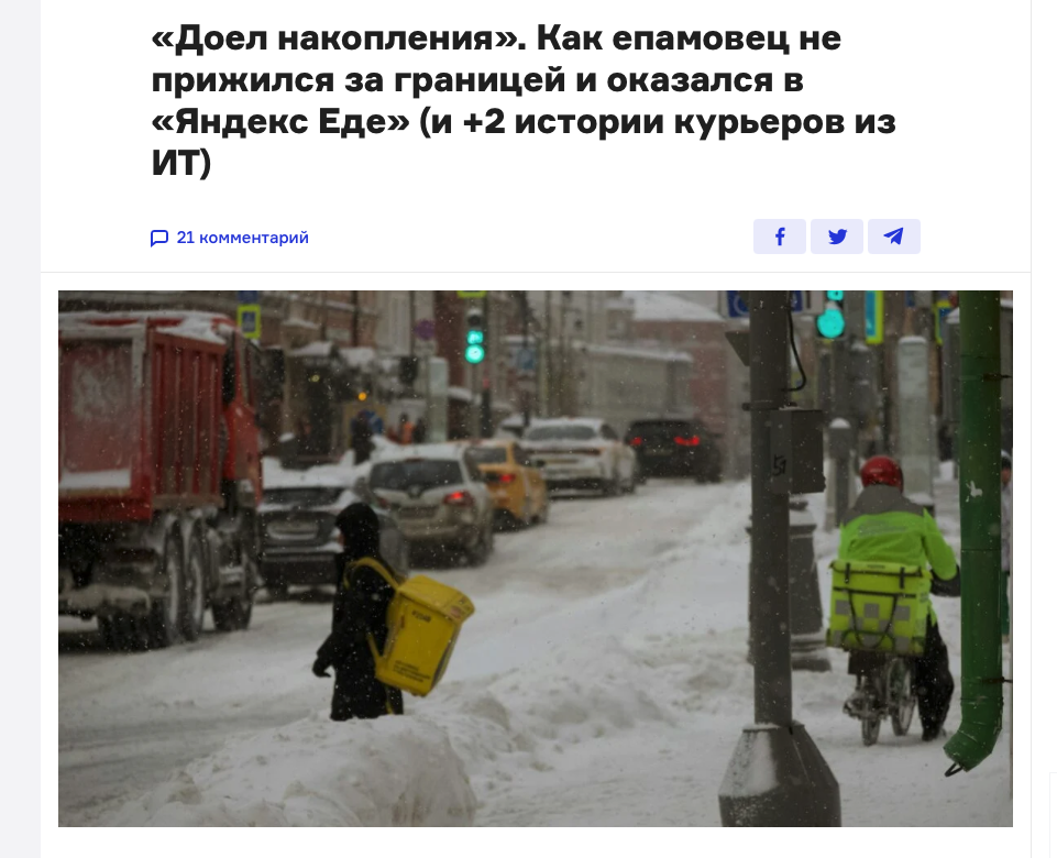 Минчанин Артём* со стажем в ИТ больше 13 лет продолжает работать в этой отрасли и сейчас. Но какое-то время он параллельно работал в доставке (а также в такси — но там недолго).