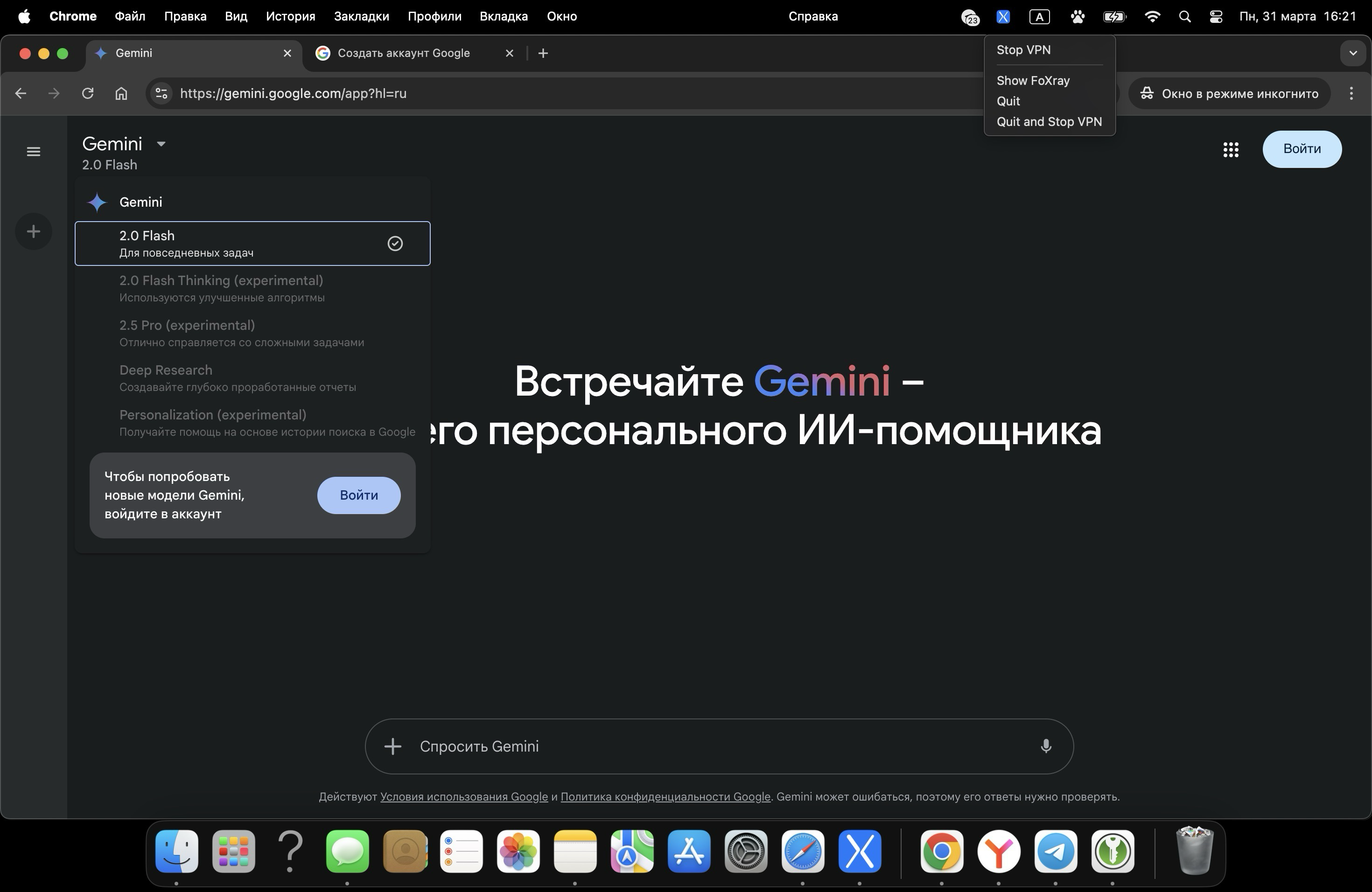 Использую свой VPN и до момента авторизации дает пользоваться Gemini 2.0 (пик3), но для других версий просит авторизоваться. Поэтому как мне кажется дело не в моем впн.