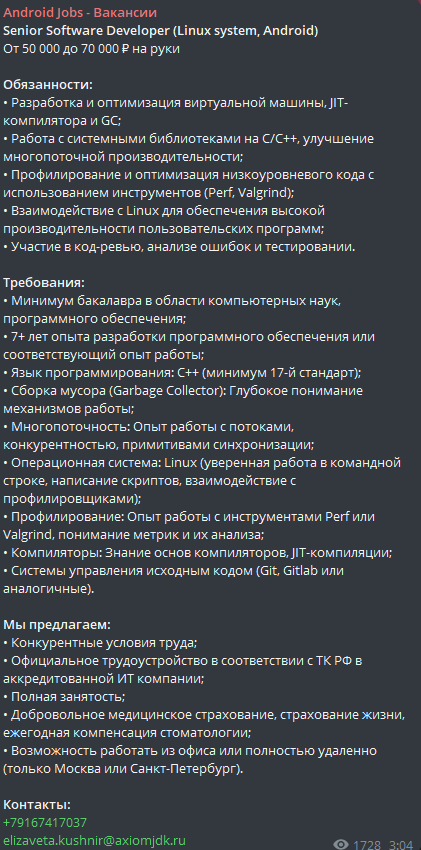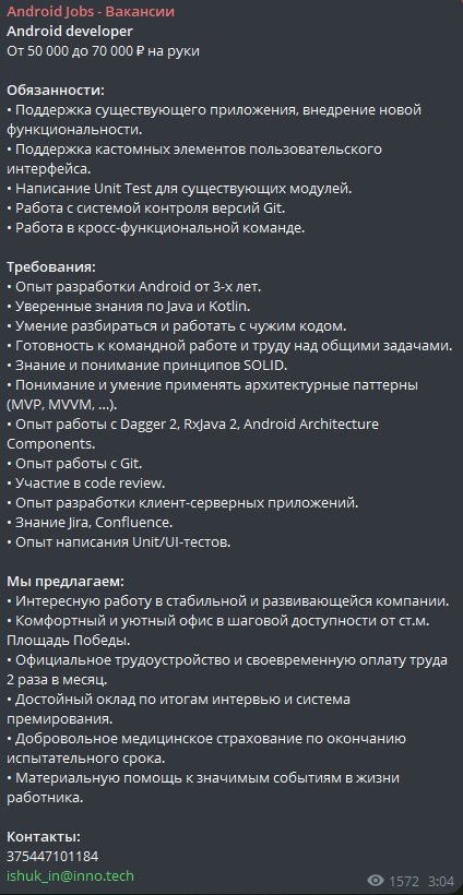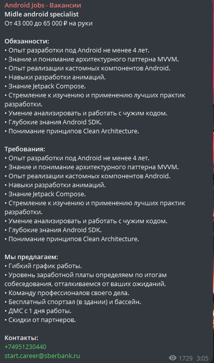 Андройд это, конечно, весело и интересно, но в рф походу мертво. Одни вакансии типо таких >>3417574 попадаются. Перекатываюсь в воздухе на бэкенд го и параллельно продолжаю отправлять заявки в конторы.
