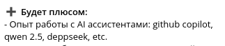 >>3451562 Тоже кекаю что в профильном треде в 2025 кто-то до сих пор пользуется этой терминологией. У среднего разработчика занние языка где-то далеко зарыто в приоритетах скилов. Коммуникация, понимание рабочих процессов, адаптивность, жонглирование десятком тулзов, аналитика, перечислять можно бесконечно. Последние 2 раза когда я устраивался в бигтех всем вообще было поебать что у меня в кокнретно языке / фремворке нет или мало опыта, потому что это наживается за пару месяцев онбординга. А пот понимание того как веб работает в целом, как раузеры код переваривают, как архитектуры на бекендах устроены, систем дизайн, хайлоуд проблемы - вот это все надо знать. Весь этот опыт в черепной коробке полезнее чем нейронка, потому что может выдавать решения и в том числе уметь нужный промпт написать.