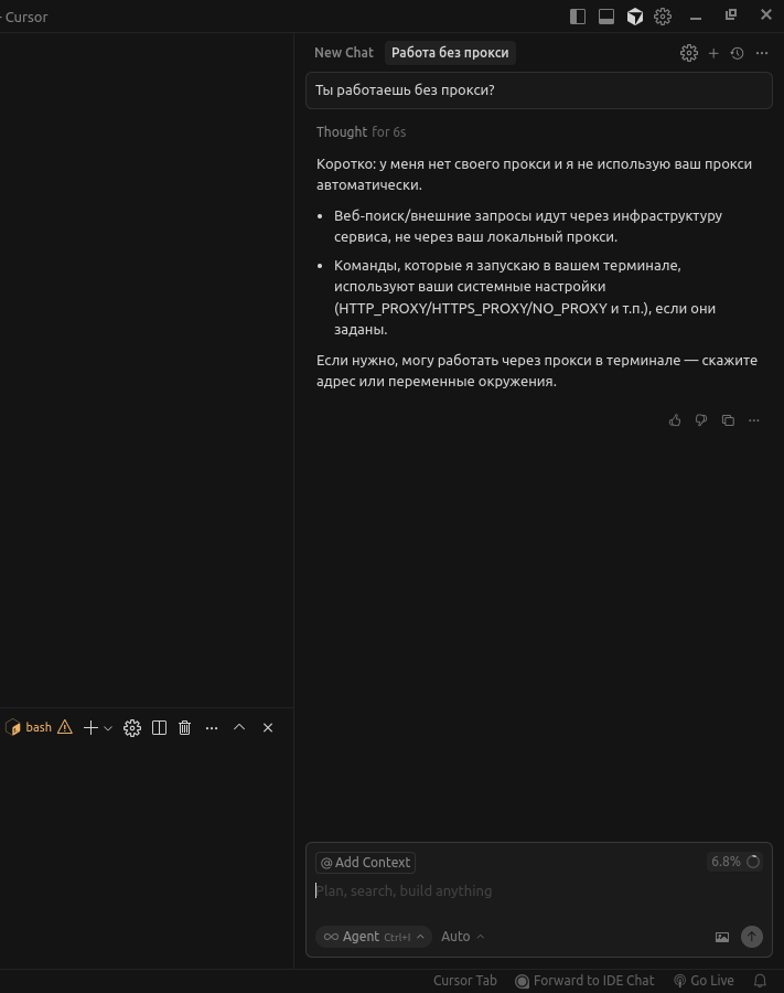 Начал юзать codex. Это мой первый опыт с агентами. Начинаю с простейших вещей типа тетриса. Но он регулярно зависает. При этом он может уже закончить мою задачу, например, я вижу по диффу, что файлы он уже поправил. Но он висит в Working... Это прям часто. Сталкивался кто? Может быть из-за того, что у меня впн не быстрый?
