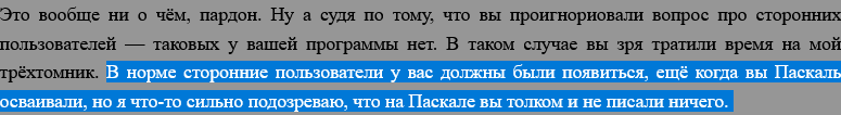 Книги на самом деле у него норм, мне зашли. Но вот хрюканина с сайта ведёт только в нищету. Будете в +30 лет с никому не нужным стеком на паскале и си пет-проекты делать, и повторять себе под нос, что вокруг якобы все веб-макаки, а вот я делаю всё правильно как пинус тормоз завещал.