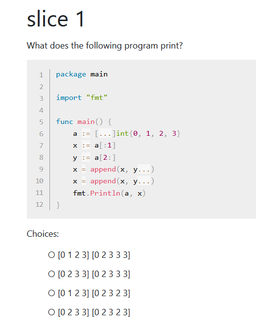 Делюсь таким золотым знанием, потому что вы всё равно не вкатитесь в го, потому что слайсы это Duck-тайпинг это самые простые вопросы, дальше вас разъебут паттернами конкаренси