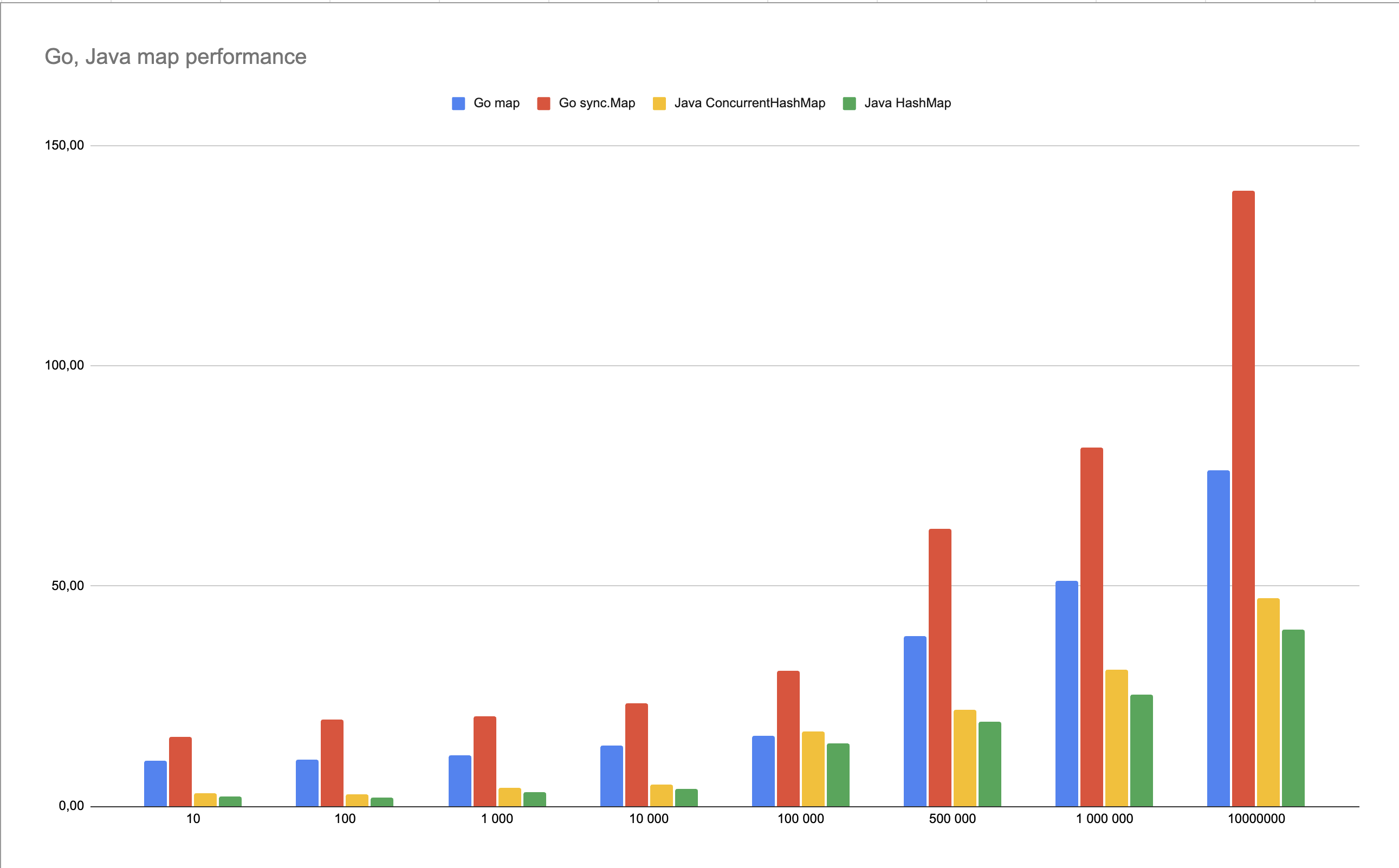 Вот например бенчмарк - берем N рандомных строк и складываем в мапку. Затем читаем одну за другой и меряем сколько стоит чтение. Даже конкарент мапа из джавы превосходит по перформансу обычную мвпу из го.