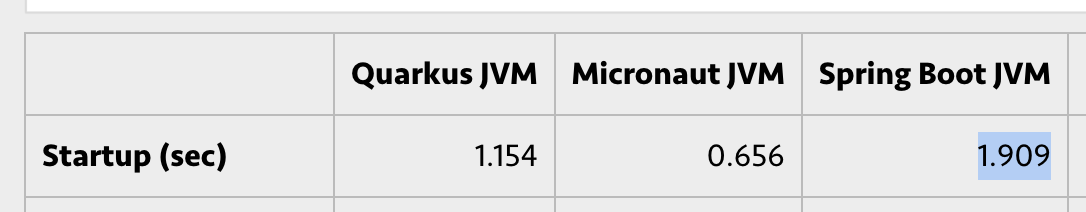 >>3607032 В статье у бута 100мс, ты в глаза чтоли? >Потому что все живут на спрингбуте Это потому что всем похуй на стартап тайм, вот и нет мотивации что-то делать