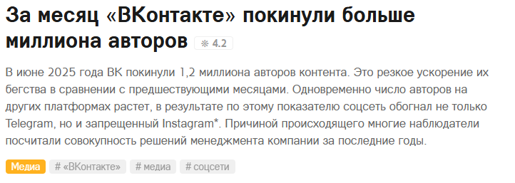 >>3660758 Ну конечно! Если в ВК там неиронично страничка работает с тормозами даже на современном Ryzen 5600 с 32 ГБ памяти. А уж на древнем барахле там полный пиздец творится. Плюс реклама. Плюс банально неудобно. Не удивительно, что ВК в заднице.