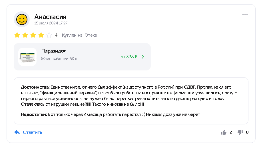 >>1898440 Ну мне он тревогу фоновую убрал постоянную, плюс вегетативные проявления социальной тревоги снизил, да и мысли меньше путаются, также дрожь сильная ушла и мелкая моторика улучшилась, настроение стабильное более стало, в эйфорию больше не вылетаю. Все СИОЗС, СИОЗСиН кучу побочных эффектов давали и не особо помогали от тревоги. У меня действительно СДВГ, но больше проблемы внимания, чем гиперактивность.