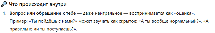 >>1890391 Ну в любом случае, ИМХО, глубокому невротику/человеку с расстройством далеко не уехать без базы. Ну например книги из шапки это вообще какой-то минимальный базовый набор, и то где-то там на уровне азбуки. Всё равно надо лезть прям в дебри. База это 50% ремиссии. Чтобы знать какие вопросы задавать ГПТ. Вообще это тот самый момент когда вопрос содержит ответ.