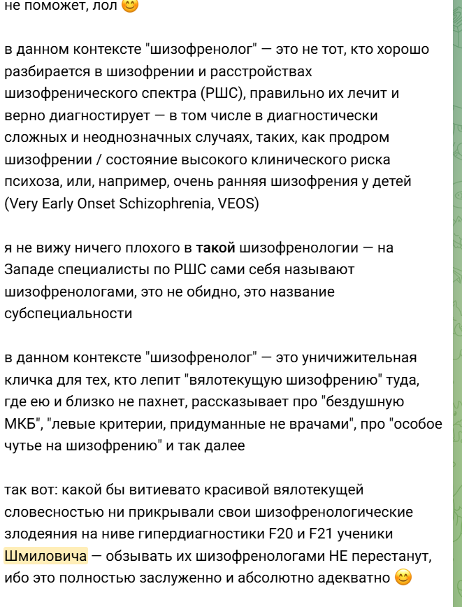 >>1886994 >Почему делает обобщенное утверждение? С какого хуя у него шизофрения без психозов это шизофрения? Для этого выдумали название ШТРЛ и отделили от шизы вообще-то.