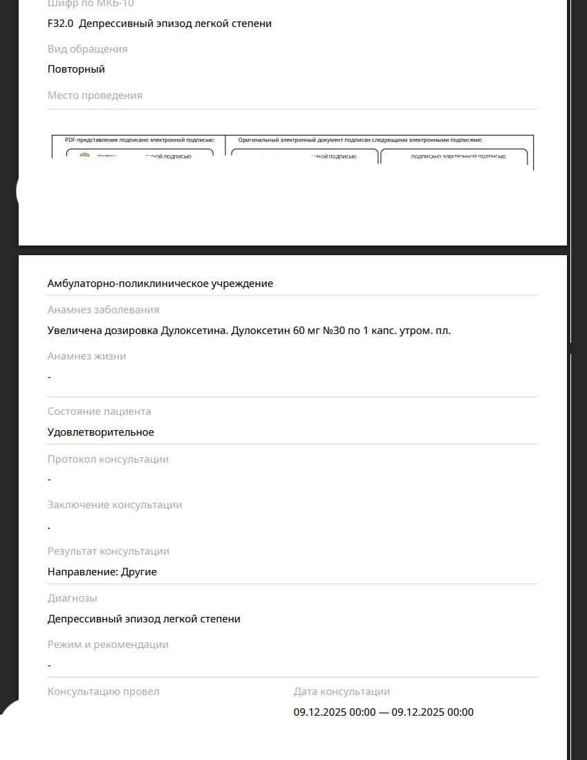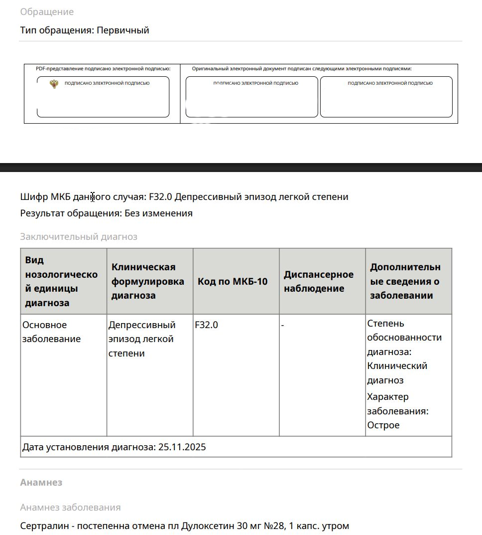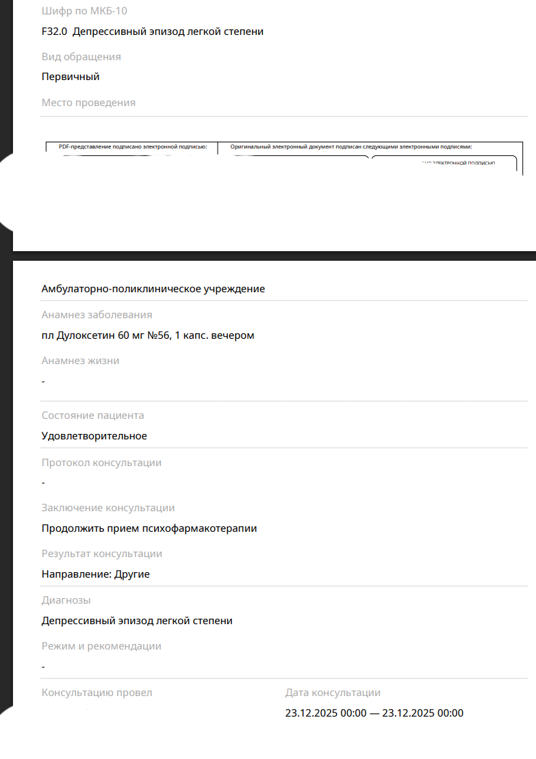 Мне частный психиатр поставил этим летом (где-то в июле) диагноз Ф43.21 и Ф32 на последнем приеме в августе. Я решил попытаться взять академический отпуск в связи с этим и плюс начать все эти документы подтверждать в государственных учреждениях чтобы потом получить категорию "В" в военкомате. Пришел в ВУЗ к заву кафедры по учебной работе, попросил академ по этим справкам, но оказалось что для ВУЗа важно только справка по официальной форме из гос. ПНД. Сказал им, что я боюсь туда идти т.к. последствия для жизни и тд тп. В общем, послали меня нахуй и просто буквально уговаривали доучиваться, тип я там статистику испорчу для министерства образования и прочее. Я записался в ПНД в своем городе к врачу-психиатру участковому через госуслуги. На меня косо посмотрели в регистратуре, сказали: "что за академ? у нас тут лечатся... пьют лекарства ты вообще от кого пришел? надо направление от терапевта из больницы". Записался через госуслуги к терапевту в больницу, пришел на прием, показал стопку справок от частных психотерапевтов/психиатров (наблюдаюсь у частников с 2020 года).