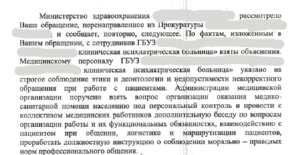 >>1887860 Кароче, позвонили из минздрава. Сказали взяли жалобу в рассмотрение, всё выдадут по моему запросу. Жалобу писал следующего хараткера (удалил личные данные)