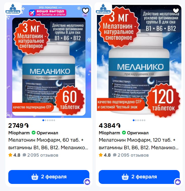 Ещё вопрос. Искал пролонгированный мелатонин и не выключил впн с амерским айпи. И мне гугл выдал, что он есть на озон, но чёт вижу какой-то странный знак вместо рубля. Вырубил впн и всё, мелатонин с озона пропал вообще и страницу пишет не найдено, которая только что была открыта. У нас чёт уже и мелатонин запретили?