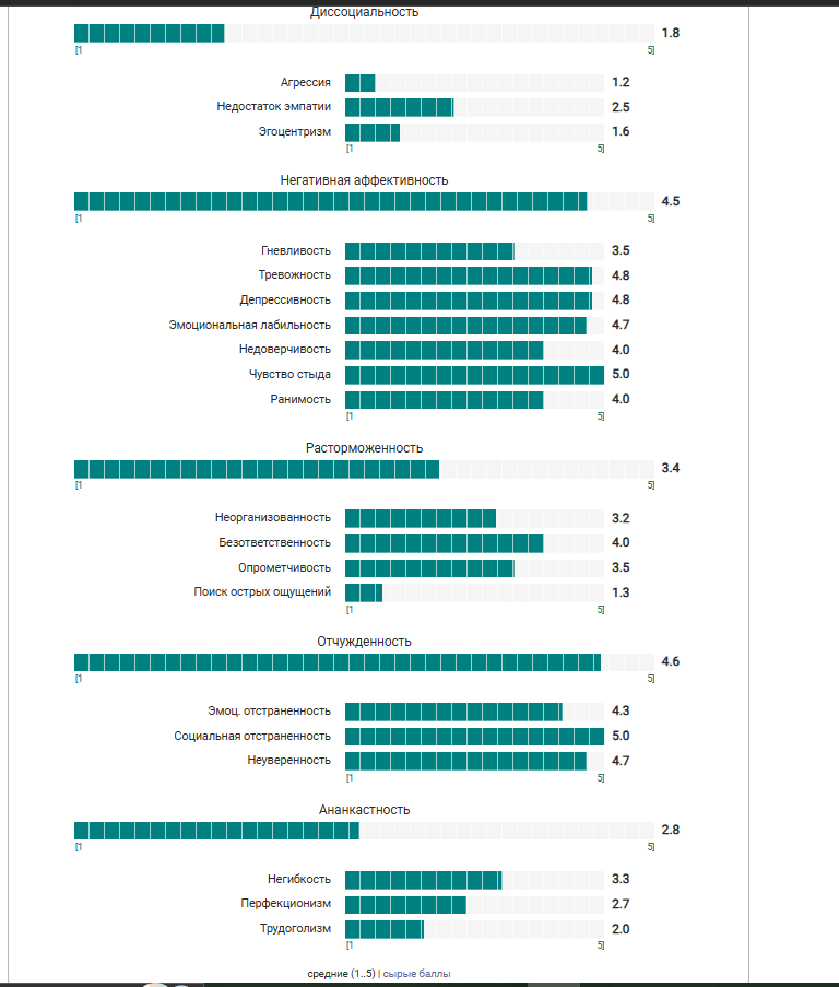 >>1936829 Результат тестов. Но мне очень трудно всегда проходить такие тесты. Как будто я могу несколько даже противоположных ответов дать и они будут про меня, особенно где нужно описывать эмоции и поведение среди других