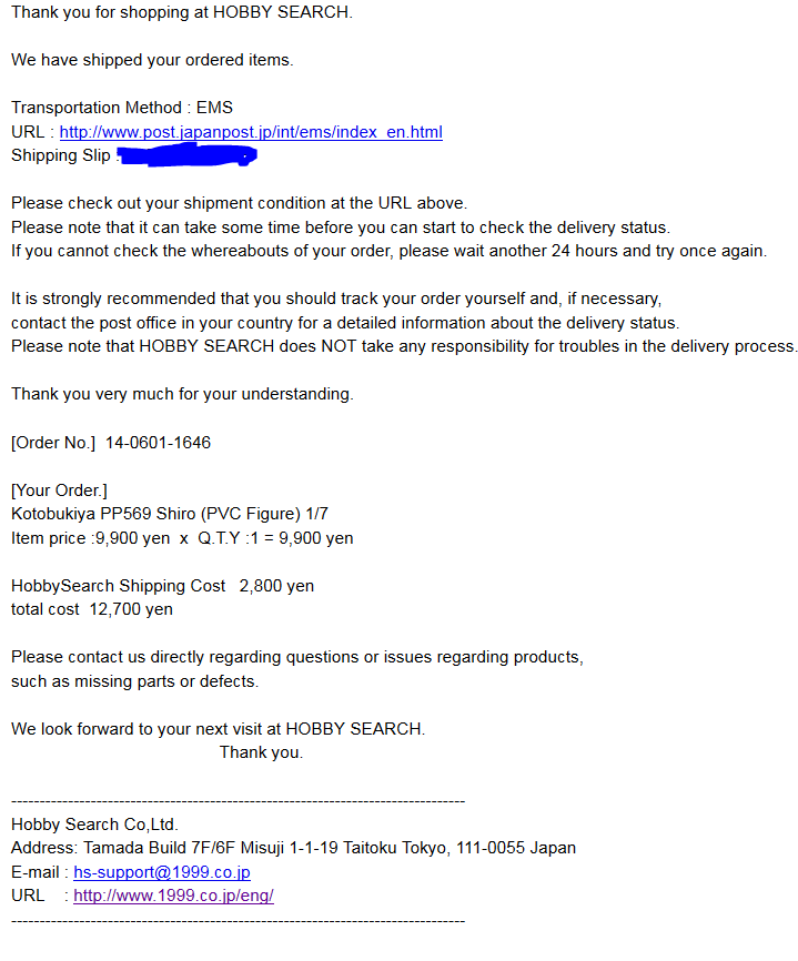 >>15382 Нет, начислений не будет. Фри шиппинг правда фри, только смотри, чтобы рашка была в списке стран, куда продавец доставляет. Хотя, даже ее там нет, не повредит написать продавцу сообщение, возможно он согласится послать, или забыл добавить ее в список (у меня было такое). Ну и как обычно, смотри на рейтинг, будь осторожен с китайцами (у тебя кстати как раз китаец, но отзывы вроде нормальные и в инете упоминания есть). 3200 наверное дороговато, не в курсе нынешних цен на эту фигму, но на мандараке она примерно за 5000 йен продавалась (не знаю, насколько давно). Сейчас там есть одна за 8000, открытая, но неюзанная: http://ekizo.mandarake.co.jp/shop/en/item_s-1057116.html