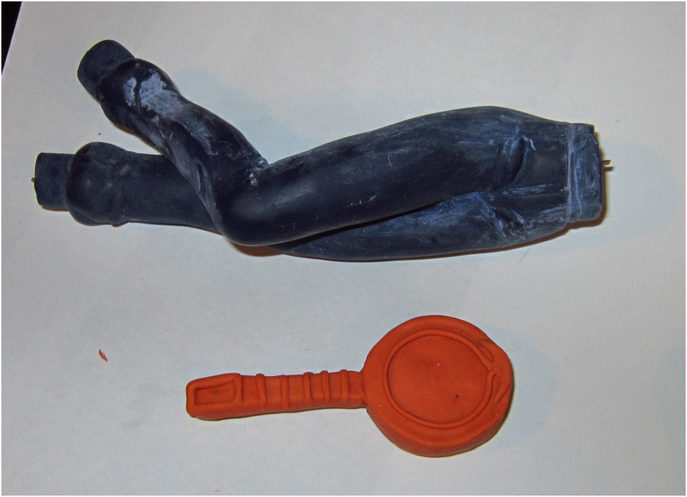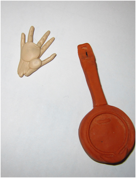 Решил попытать счастья еще раз с рукой, слепив ее по гайду, пока в процессе. Надо их много-много лепить, пока получаться не начнет, вестимо. Со сковородой нагло считерю, т.к. она и без того далека от первоначального цвета - использую мэджик для допила.