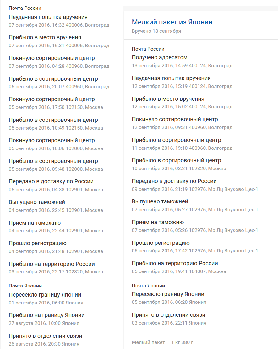 >>27208 Сколько примерно регистред сал до Рашки добирается? Между ДСом и моим Мухосранском полторы тысячи км, китаепосылки доходили за месяц примерно, если это важно. Долго ждать придётся? Купил впервые на пламойке. У меня с момента заказа уже 12 дней прошло, 5 из которых он обрабатывался, еще 5 был на приеме в Сайтаме и 2 дня теперь в Токио.