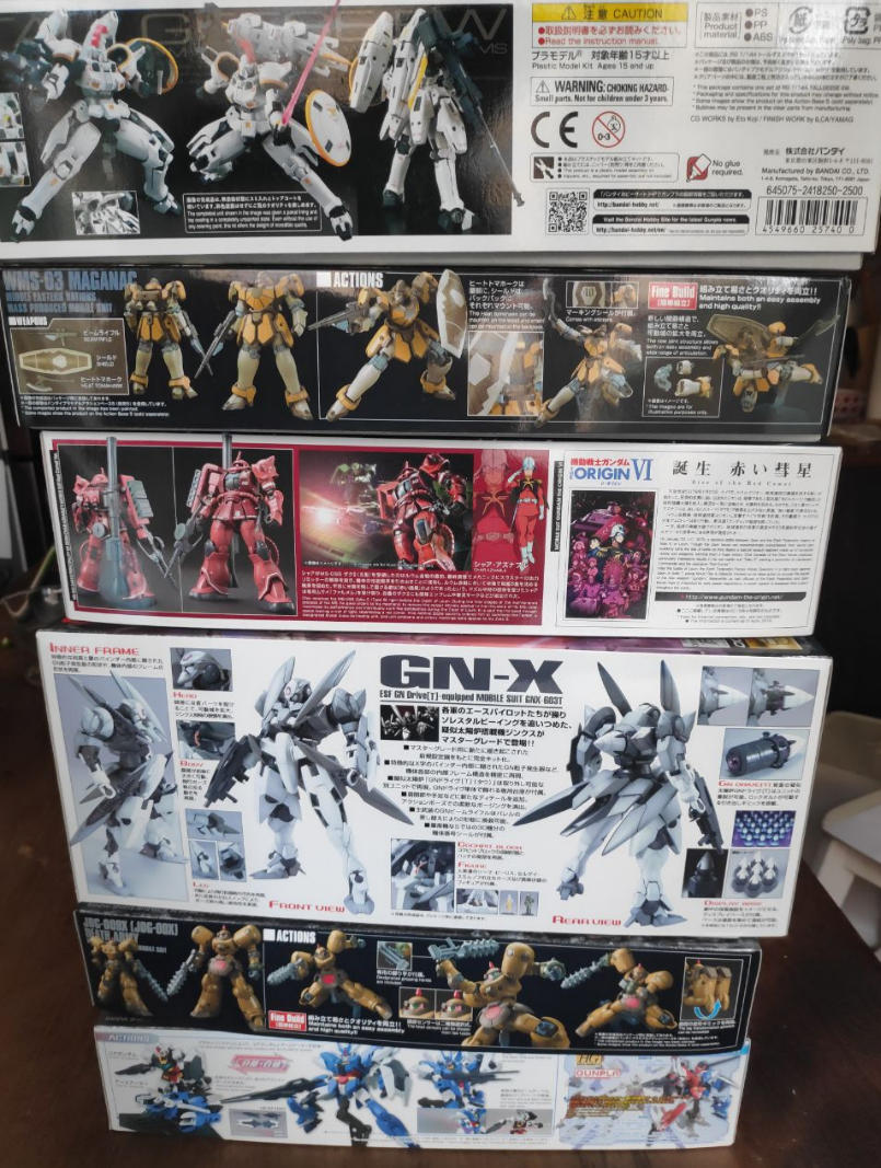 Заказал себе Stark Jegan, RX-78GP01, несколько комплектов нормальных декалей вместо ебучих стикеров и разные запчасти от котобукии (пусковые установки, автоматы и прочее) для допилов.