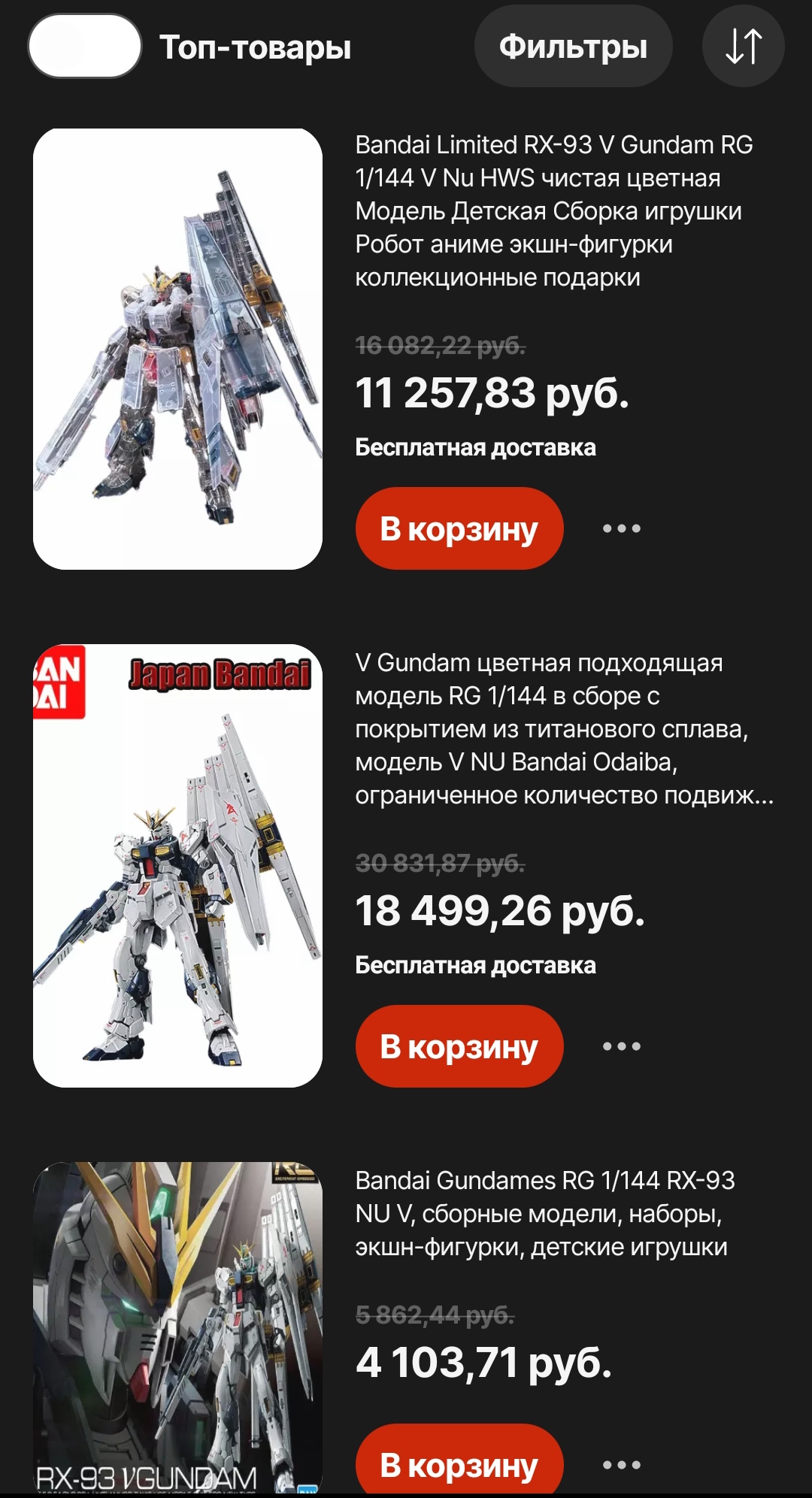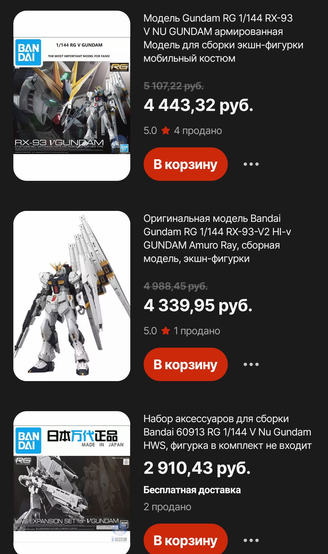 >>56342 Решил исходные цены посмотреть: MG 2011 года стоит 4800 йен, RG совсем новый 4200 йен. За счёт новизны и актуальности повысили ценник на рынке перекупов. RG после отхода от заранее отлитой основы стал дороже. >>56344 Почитал внимательнее и правда раньше просили продавцов заявленную стоимость посылки делать ниже. >>56346 Понимаю что вряд ли будет настолько плохо, но есть порыв затариться на всякий случай. Выжду недельку, может отпустит.