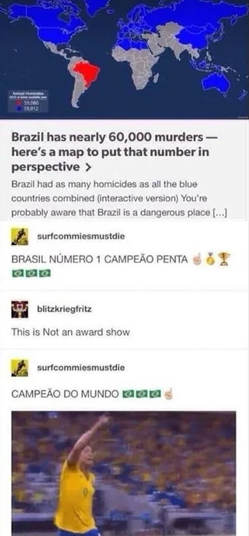 >>56343 Там его не ввели, он и так был, его просто доджили, а теперь глобальный Юг поднимается и правительство Бразилии договорилось с самой площадкой. 92,77% это конечно прям лол.