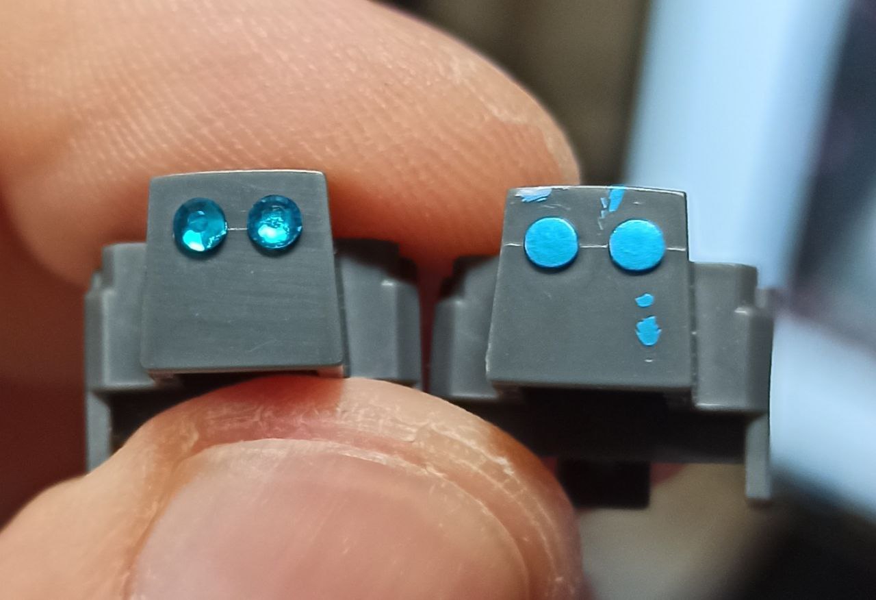 В тредах писали давно про вариант моноглаза для мехов Зеона и подобных. Вот такая штука https://aliexpress.ru/item/32862379504.html?sku_id=65379601824 можно конечно и в магазинах найти. Выглядит поинтереснее наклеек и краски, на капельке супер клея держится очень прочно. Можно такое и для линз на оружии использовать, главное размеры найти. Грани заметны если сильно присматриваться, если моноглаз под прозрачным пластиком, то присматриваться надо сильнее.