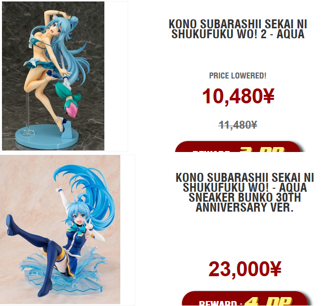 Я уже говорил, какой я идиот? Если да, то самое время напомнить, вот такой я идиот. Я хотел купить с нуля фигурку Аквы, и чтобы она подорожала у меня в руках. И я подумал, какая из этих двух подорожает? Явно от Пхата. А другую я потом куплю на манде за десятку, качество-то у неё не ахти.