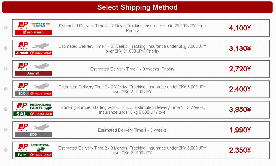 >>42798 Если ты так много заказываешь, то уже должен был знать, что Ами тебе бумагу во все щели пихает, чтоб больше места занимало. Да и в полне себе без проблем 4 фигурки могут не влезть в парсел. На Ниппоне тебе зато прям сразу показывают, что ты будешь переплачивать за пересыл даже обычного САЛа. Вот, например, заказал я у них >>42729. 5к йен за доставку простым САЛом, 5,8к за ЕМС, лол. На Ами я бы отправил её САЛом за 2-3к йен.