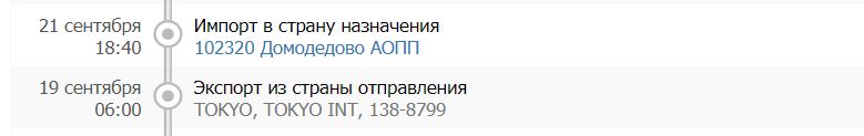 >>42775 9 июля пришло требование оплаты от ами 13 июля отправили (в ночь с 12 на 13 по нашему времени) 15 числа уже в мск была. Ну и 8 дней ебала мозги на маршруте мск->таможня в татарстане->мск, в итоге пришла вчера только.