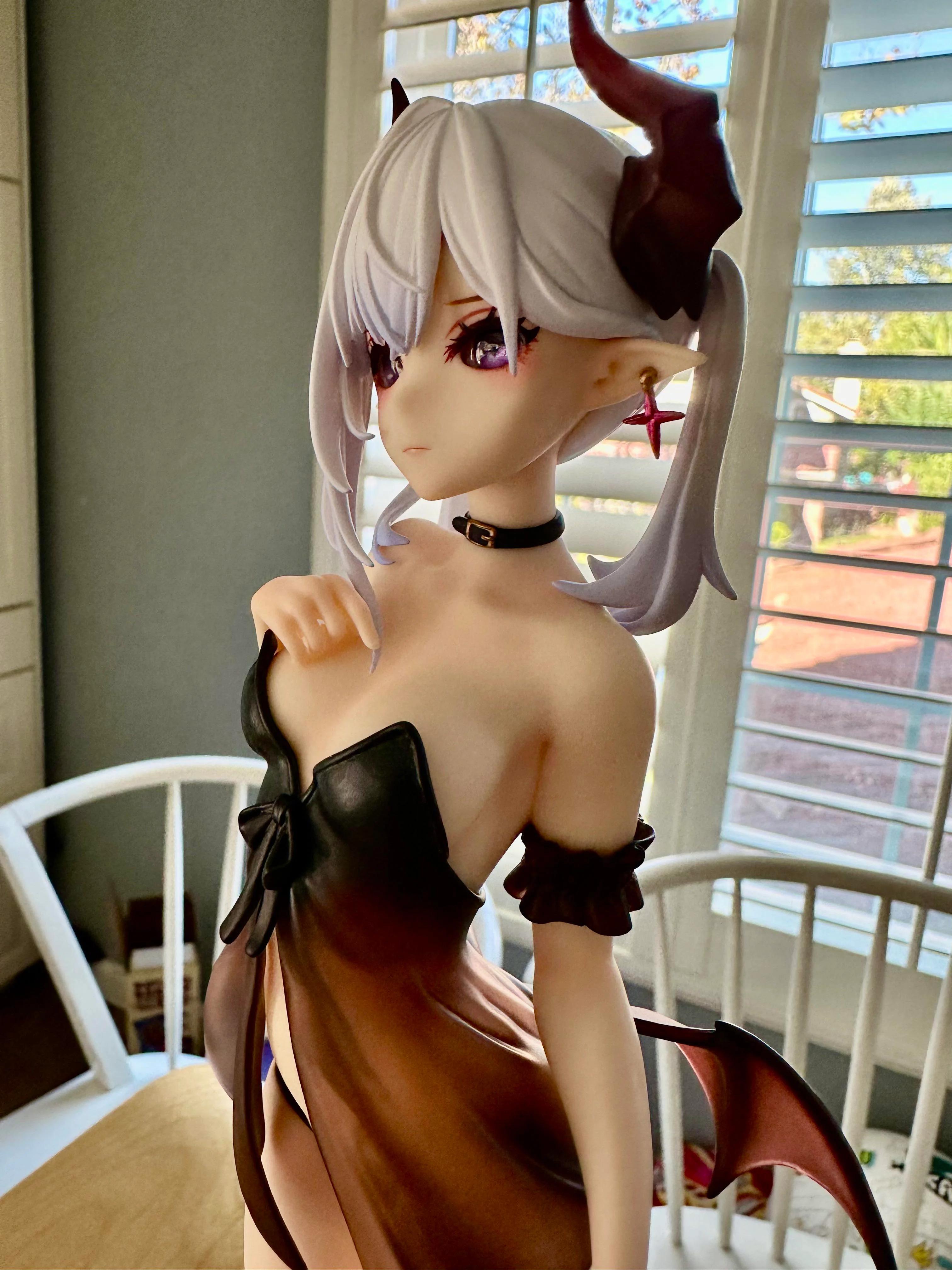 >детализация очень хорошая но мне пришла фигурка с браком, криво приклеена нога, из-за чего в подставку плохо вставлялась и в итоге треснула, за эту цену, наверное и нормально, в целом на полке незаметно этого но вблизи это ужасно