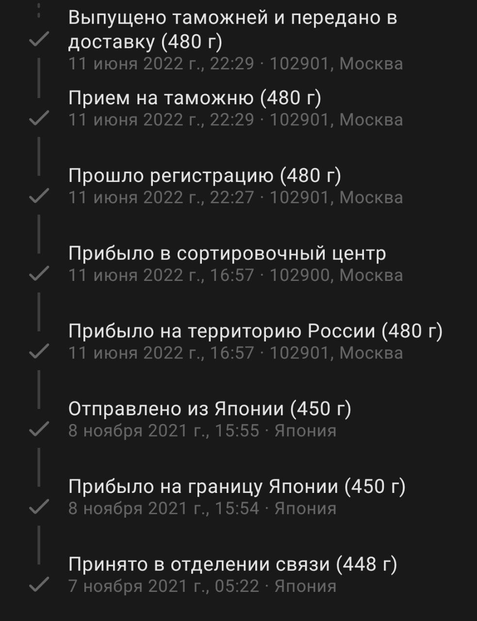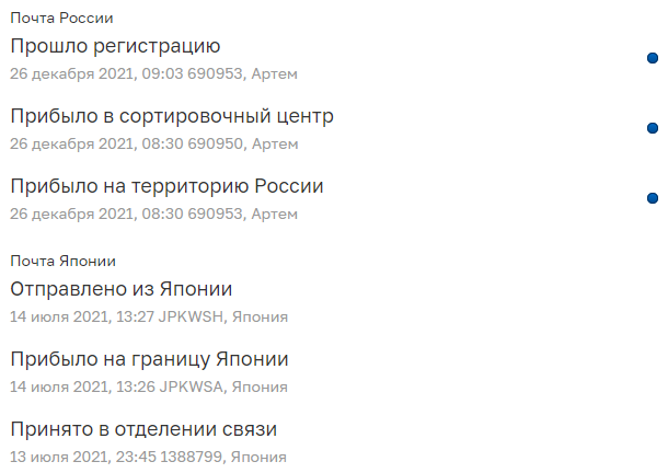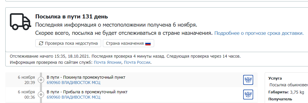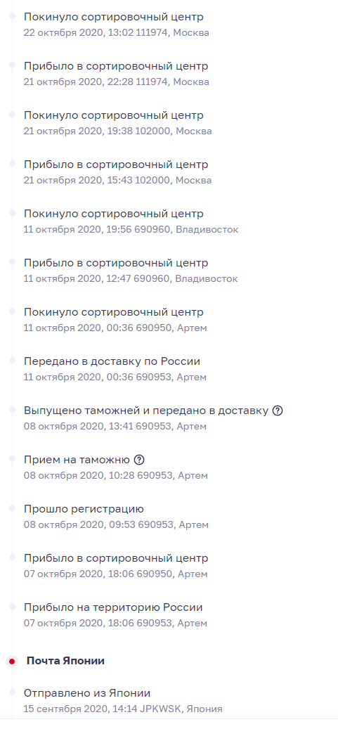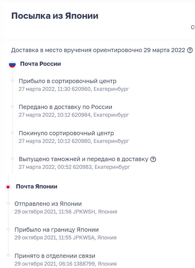 Сегодня выскочило уведомление в приложухе, что посылка поступила на сортировку, захожу в приложуху, а там все так же "Отправлено из Японии" и 86 дней в пути. Проверил трек на сайтах, тоже дальше отправления не прошла посылка.