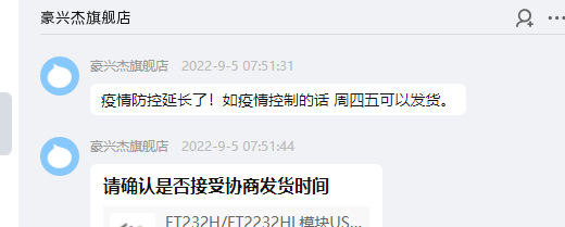 >>54856 Мне китаец оттуда написал на днях, что они сидели на карантине из-за короны и попросил перезаказать, потому что мол по срокам заявленным не успеет дойти (заказал я 30 октября). В прошлый раз где-то через неделю отправили.