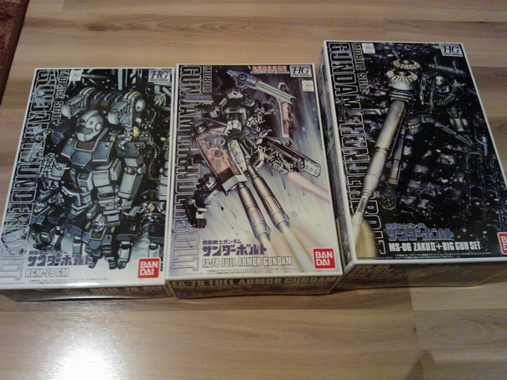После 11 дней ожидания получил-таки посылочку от ХЛЖ, а в ней хай-грейды: Perfect Strike Gundam Legend Gundam GM-III GM [G] Gouf Flight Type Gundam AGE-1 + Razor parts Завтра приступлю к сборке, Гоуфа и Разор собираюсь красить, остальных - как карта ляжет.