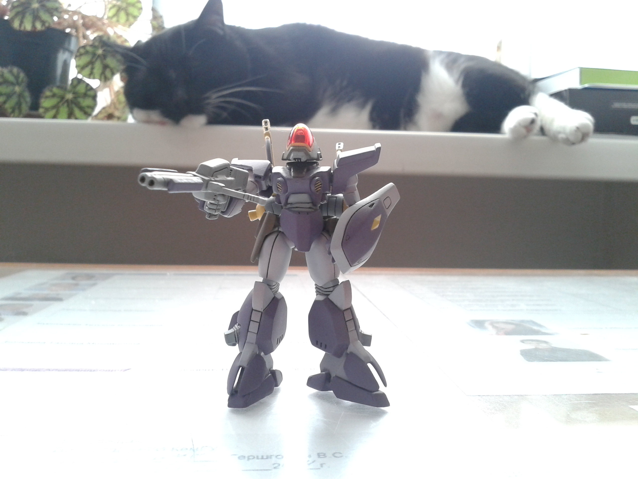 Дособирал первого гандама. http://www.amiami.com/top/detail/detail?gcode=TOY-GDM-02166&page=top%2Fsearch%2Flist%3Fs_keywords%3Dsinanju%24pagemax%3D20%24getcnt%3D0%24pagecnt%3D1 Сначала был просто в эйфории - поначалу все детали идеально подходили друг у другу, а не как в русских/китайских моделях, где фиг соберешь без молотка и мата. Ближе к концу попался один щиток на ногу, который ну очень плохо встал на место, еле как присобачил. Потом, при сборке талии так и не понял, как собрать пояс из колечек - на картинке они просто соединены, как будто насажены на веревочку, но веревочку туда никак не прикрепить. Ладно, не стал собирать эту часть, ее все равно почти незаметно. Что хуже всего - огромный джетпак очень сильно тянет робота назад, с весом не рассчитали. Оружие фиг вставишь в руки - кисть двигается слишком легко, и оружие просто тянет всю кисть вниз. Да и прикрепить, к примеру, базуку я так и не смог - размер не позволяет. В итоге - поначалу очень хорошее впечатление было слегка подпорчено описанными проблемами.