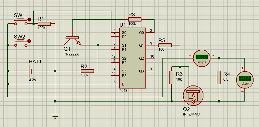 Всем привет, накидал данную схему, принцип работы которой заключается в подаче питания на нагревательный элемент R4 если была нажата сначала кнопка SW1 а затем SW2.