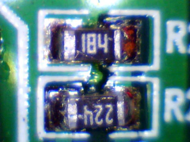>>422000 Короче, возьми два резистро с маркировкой 2K2 и 2R2 - и посмотри, на что больше похоже. Не знаю, есть ли стандарт на шрифт маркировки. А то у каждого производителя может быть свой шрифт.