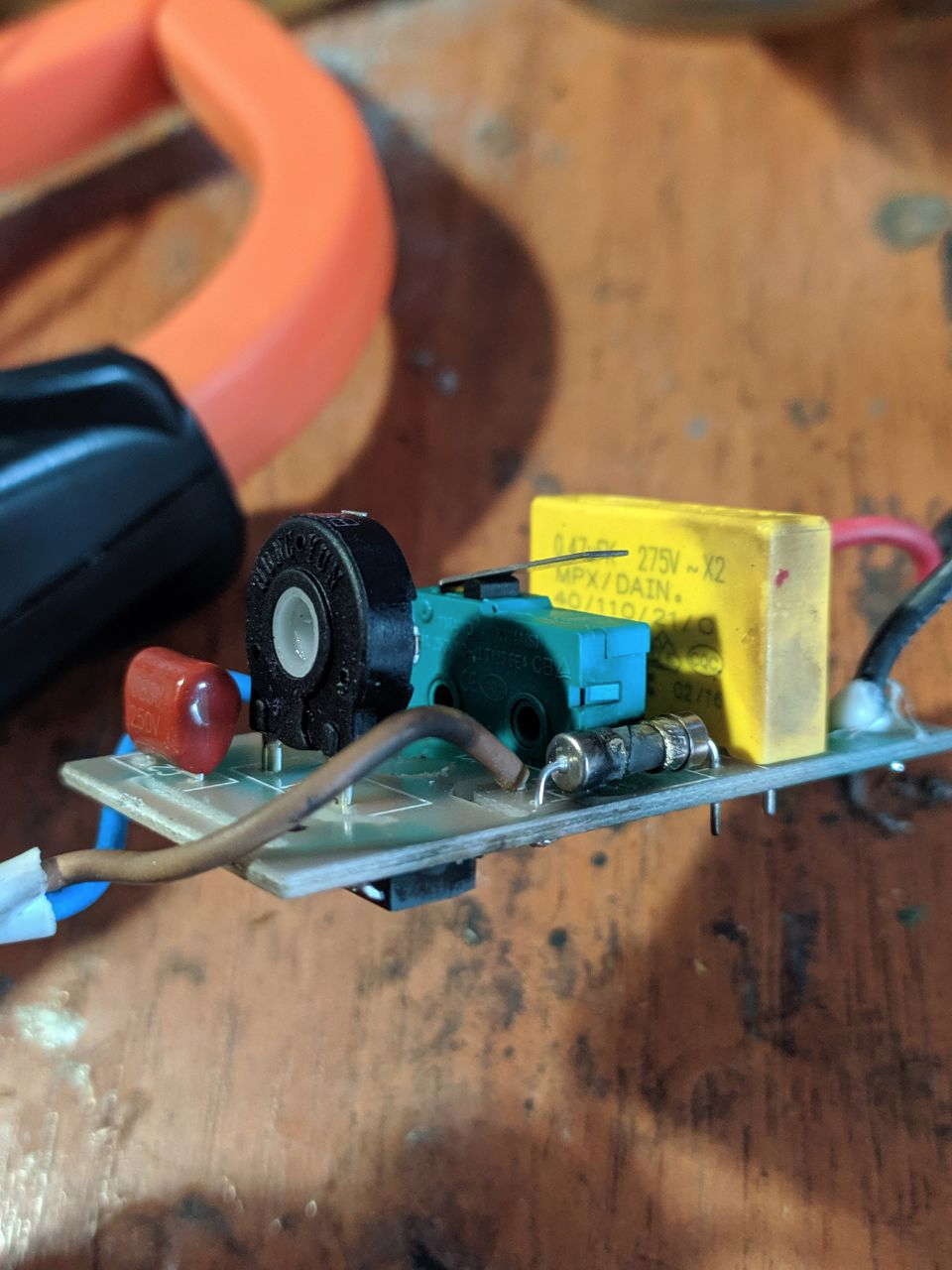 >>242373 >Анон, помоги запустить коллекторный двиг из нонэйм дешёвого миксера. >Все провода и былые соединения просрали. >1-й пикч: в зелёном контуре это нижние контакты трансформатора, сюда так пнимаю подаётся 220В ? >красным контуром обвёл контакт, выведенный то ли с корпуса, то ли с щёток. для чего он? >2-й пикч: на одном из входов трансформатора провод не просрали. но если всё же туда не 220В подаётся, то куда этот белый провод (пурпурный контур)? >3-й пикч: на регуляторе скоростей остался один контакт без провода. что туда подключать, откуда вести провод? >что должно подключаться на контакт переключателя скоростей в красном контуре? >>242373 ойнетуда.