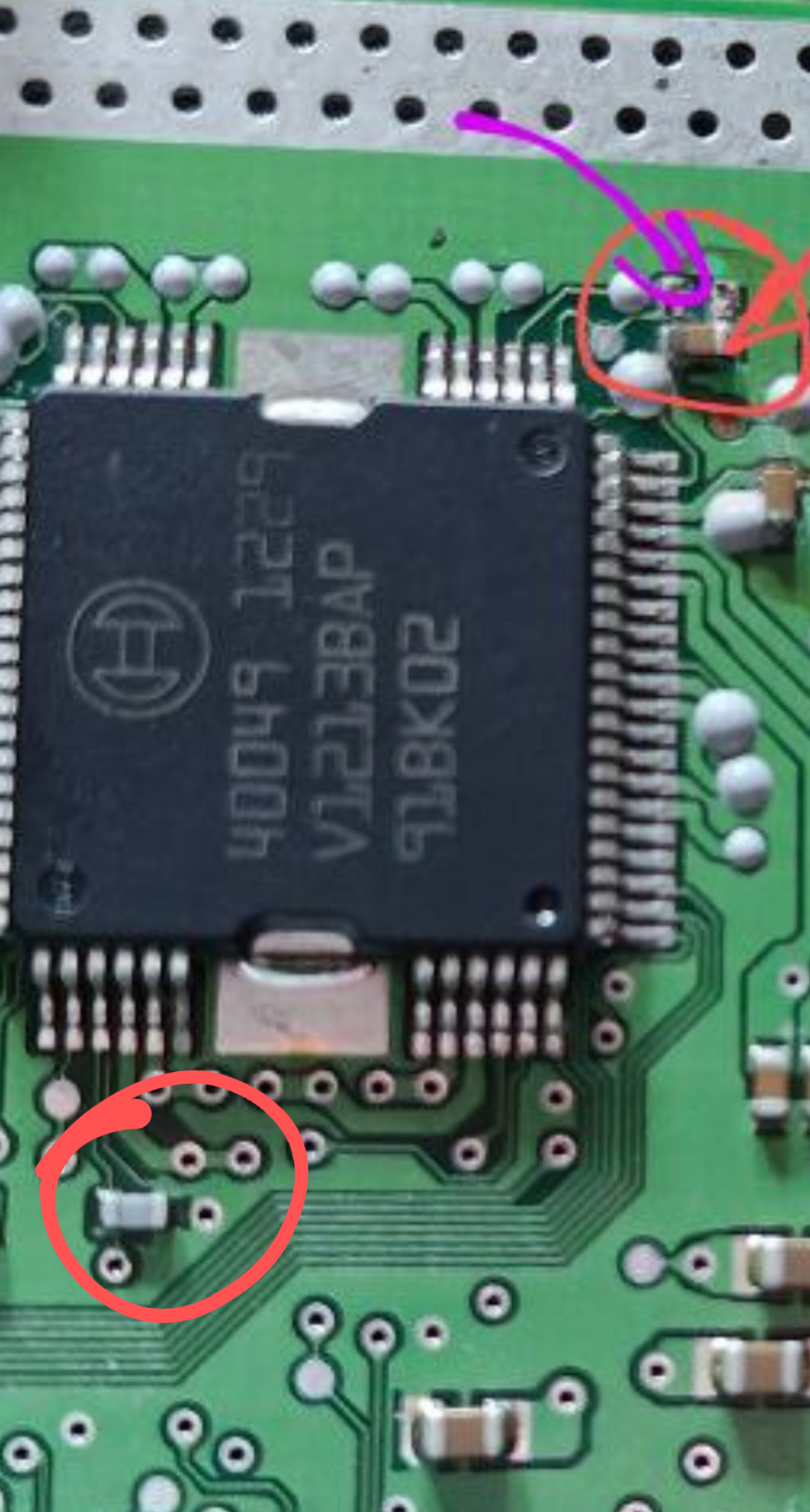 Попался во вторые руки мод плата. Достался бесплатно. С ходу видно два сбитых конденсатора и какая-то расцарапанная хуйня-нейм. На замену, однозначно. Но вот чем менять - я не знаю ибо ньюфаг в этой теме и не могу правильно задать загуглить вопрос.