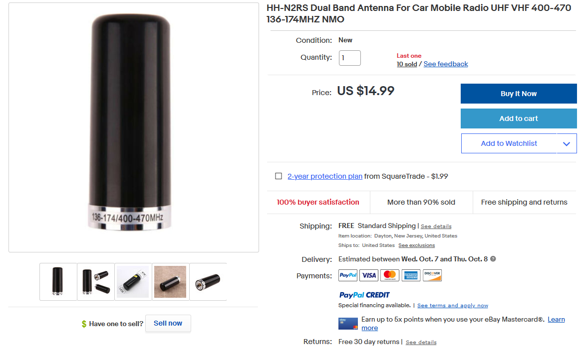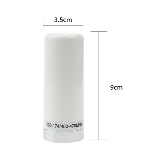 Frequency 400-470MHZ and 136-174MHZ Dual band, high gain! Gain:2.5/3 dB Power:50W Length: 9CM Top diameter:3.4CM Button diameter:4CM NMO connector, suitable for car mobile radio station. Can install to the antenna base station directly. Colors :Black Center point: VHF 144mhz and UHF 435mhz, VSWR: Below 1.5