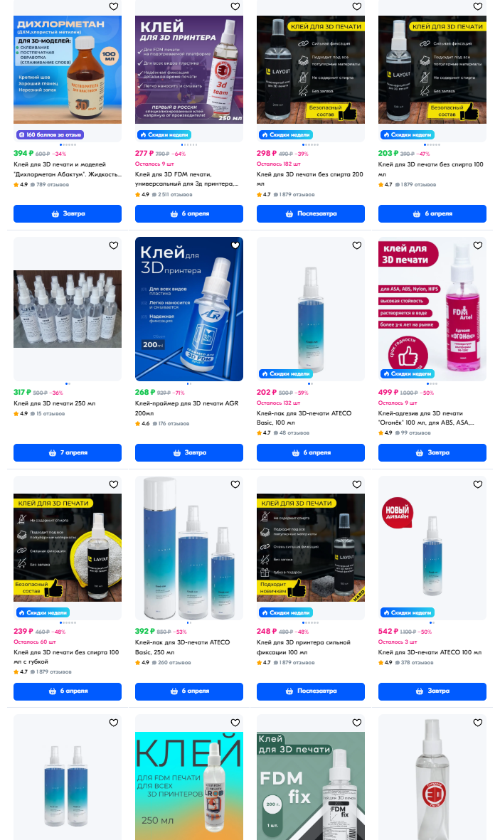 >>570684 Спасибо, у меня так то есть пластики из китая, просто 1 катушку ради любопытства брал.Этот,невский полимер разбирают как горячие пирожки, его еще хуй ккпишь, только ввложат - его сразу раскупают моментально. А Пластикоф я глянул там какие то флюорисцентные лгбт цвета.