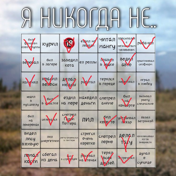 >>5610486 >>5610488 >>5610489 Эм, что за бред? Кто автор этого бреда, лол, в чем суть и смысл? Если это бинго нормиса/ненормиса, то почему там одновременно и чисто нормисные штуки и чисто ненормисные штуки? Ватафак.. Или там ошибка и НЕ комплексовал из-за внешности.. И типа Я никогда не НЕ комплесовал из-за внешности?... Что за фигня блин
