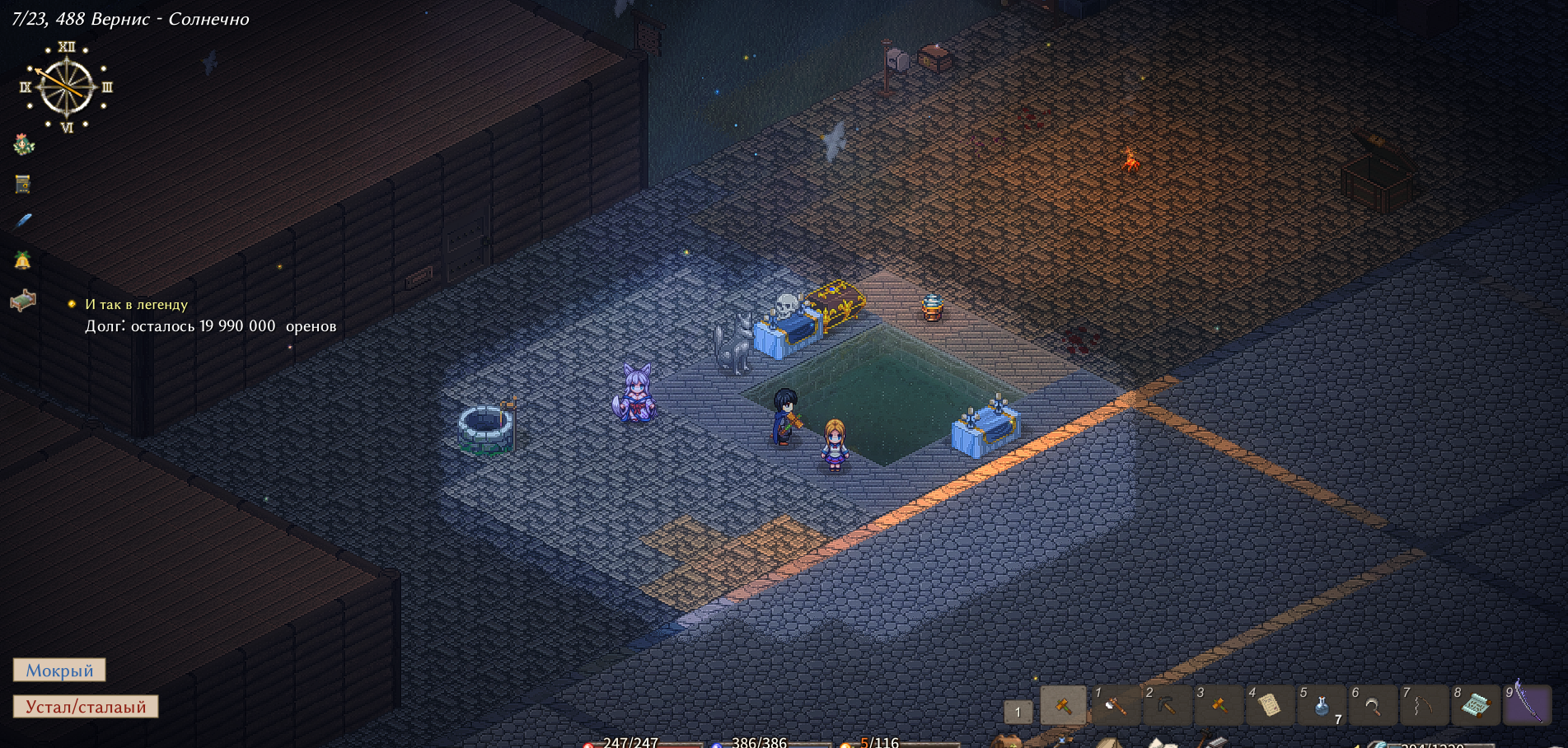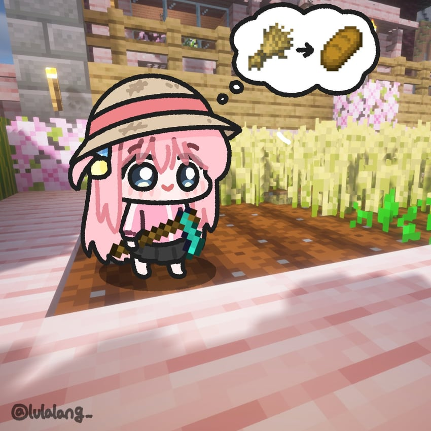 удалось пробиться из старой рощи в равнины, запас еды есть, ферма на полстака семян есть, тростник высажен, берег переделан под грядки железа нет, да и не до пещер, хочется ближайшую животину в ферму объединить. в речке дофига трески и водорослей, которые годны и в топливо, и в пищу, на крайний случай грибы для рассады есть, темный дуб высажен для подзольного разведения грибов еда прожарена на костре, поставленном на месте будущего лагеря