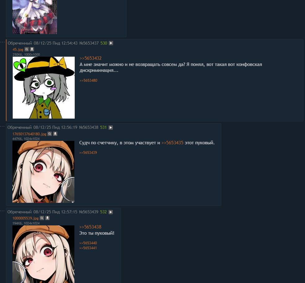 >>5653547 Ну ладно тогда прекращаю. Будем опять сидеть морковки обсуждать. А то я подумал тут румичку потерли и обижают, а тут оказывается конфочушки меня пытаются пооралить. Ну оно и не мудренно, глуповые подсосы они.