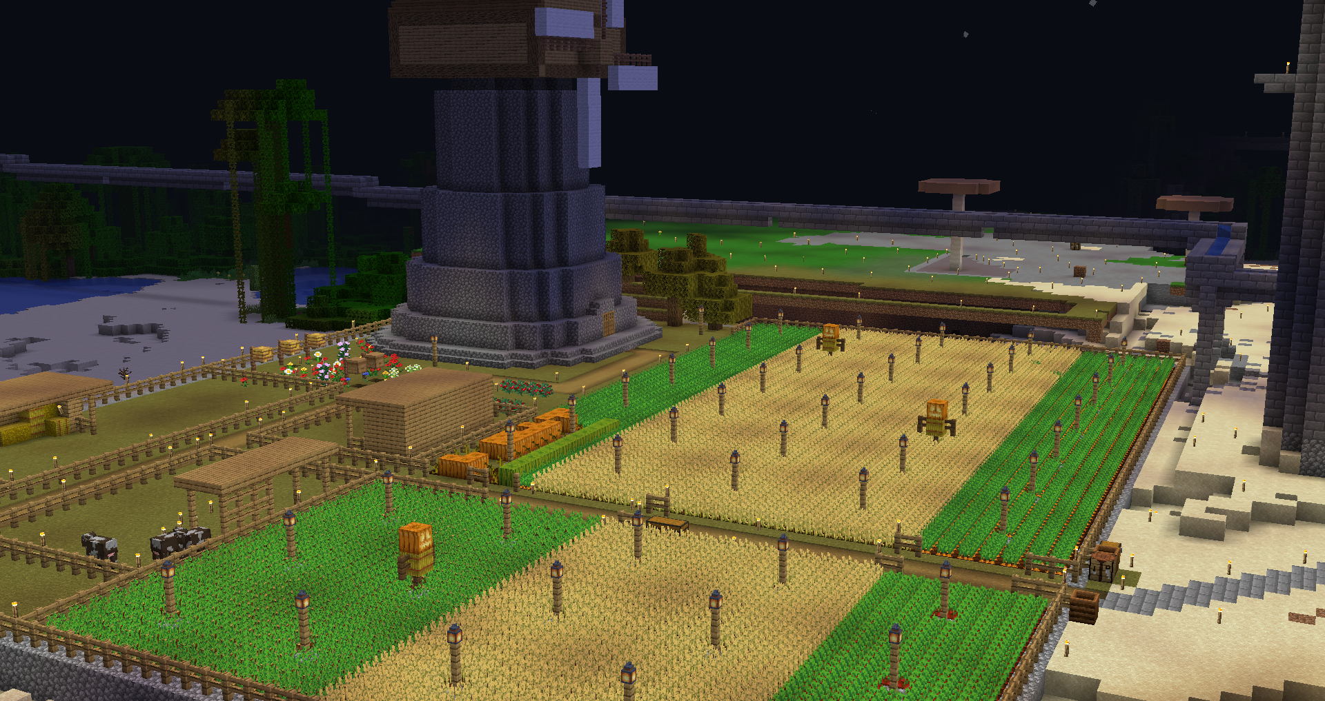 а насчет еды... ну там ферма есть, плюс вагон кустов смородины высажен, плюс в реке постоянно рыба респавнится, придется поплавать с дрыном, но десяток рыб сможет прокормить целый отряд на день