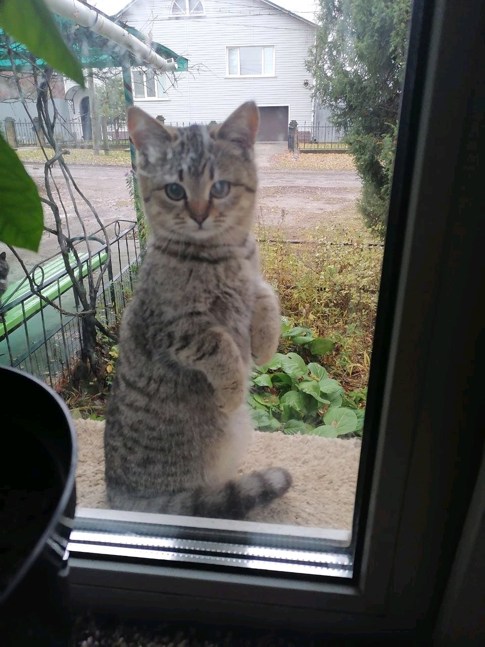 Когда я выхожу курить, эта пятнистая кошка всегда прыгает мне на ноги и звонко мурчит и ласкается, назвал её Муркой, а эту пятнистую Соней, они классные.