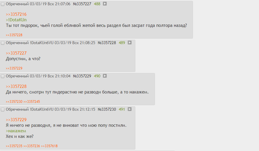 >>5664665 На скриншоте? Один пост. Еще вопросы будут? Или мне снова объяснять, что травля это не 1-2 поста, а целенаправленная "давка" и "попуск" как пишут местные нормисы?