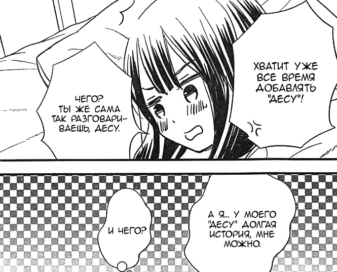 > Без "десу" не круто. Нормально. Я бы даже сказал, что «десу» это лютый макаронизм. «Же» лучше. А ещё лучше было бы «да-с», особенно если бы Суйсейсеки говорила о себе в третьем лице, как в оригинале. Это придало бы её речи нужный оттенок, и даже старомодность тут была бы в кассу.