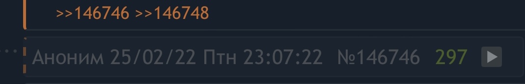 >>146924 Это где-то в Правилах указано? Давай ты покажешь, где? А если неуказано, то давай мы без сопливых разберёмся, про что нам за чаем разговаривать, хорошо? "Обсуждать конфочки" нас заставили Черезвычайные Обстоятельства, наминуточку. У нас тут - если ты незаметил - в стране операция, из-за которой может нетошто эта доска, но и вообще все интернеты могут поломацца и поэтому приходицца решать связанные с этим проблемы. И что-то раньше на этой доске свободно говорили про конфу и проблем с этим небыло. Давай будем честными: ты это сделал просто по злобе, ведь правда? А мочу, как ты изволил выразицца, обсуждали не местную, а тех, кто конфу в Дискорде модерирует. Есть мнение, что это тебя там и забанили - вот ты и злишься.
